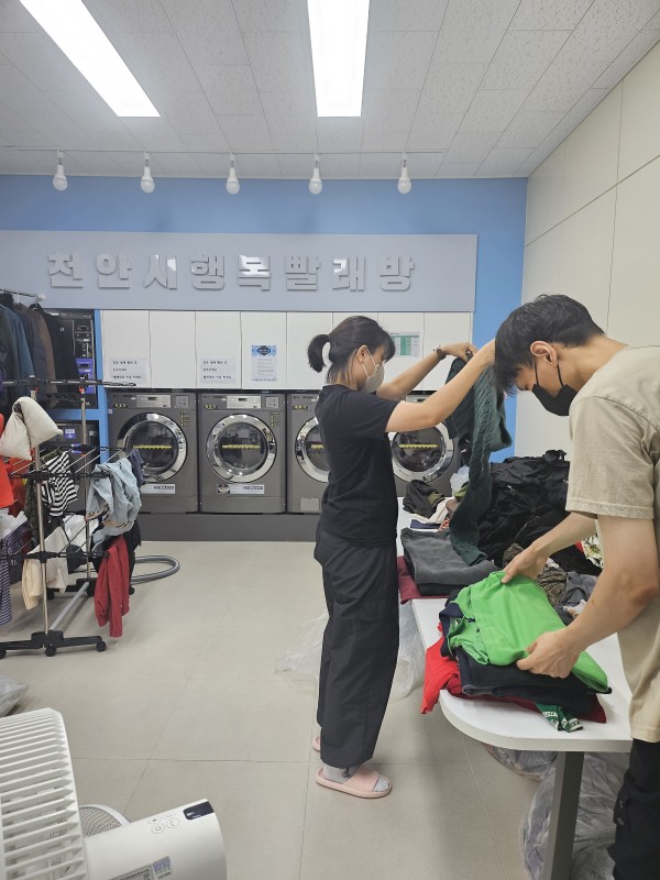 이번 지원은 성환읍사무소 복지과의 긴급 요청에 따라 이뤄졌으며 의류 590여 점과 이불 7점 등 대량의 세탁물을 신속하게 수거·세탁해 위생 환경 개선에 실질적으로 기여했다.