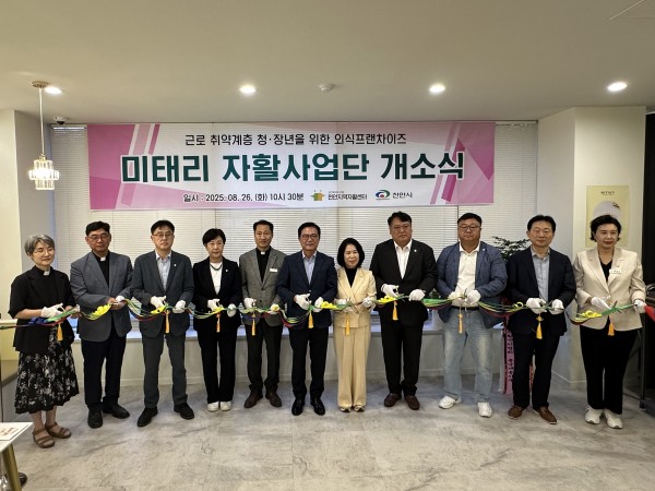 천안지역자활센터는 2025년 8월 26일(화) 외식 프랜차이즈 자활근로사업단 「미태리 백석점」의 개소식을 개최하였다. 이번 사업은 천안시의 보조금을 지원받아 추진된 것으로, 근로취약계층 청·장년에게 안정적인 복지 일자리를 제공하고 자립을 지원하기 위한 새로운 모델로 자리매김할 전망이다.