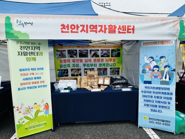 천안지역자활센터는 늘솜(전통 누룽지 생산), 노동자작업복세탁소(위생적 작업복 세탁 서비스 제공), 미태리 파스타(근로취약계층 청·장년 대상 안정적 일자리 제공), 푸른약속(디회용기 식기세척 납품·세척) 등 주요 사업을 홍보하며 참여주민들의 성과를 소개했다.